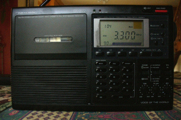 Normally used as a "kitchen" receiver mainly for FM listening, this Realistic DX-392 (Actually a Sangean ATS-818CS) could be used even as a back up MWDX receiver. I did that when my R75 was sent to Kiwa. With the Beverage and preamp connected at it, I did hear on mediumwave Croatia, France, Spain and a few North African countries. Even regular longwave as Radio France Inter and Europe 1 checked in. But disconnecting the external preamp, it became almost silent. There is a wide/narrow filter switch which is useless as the selectivity remains almost unchanged. This radio has been a die-hard receiver with more than ten years of daily service under the belt but unfortunately, it stopped working in 2014. Faulty audio capacitors appears to be the the cause.